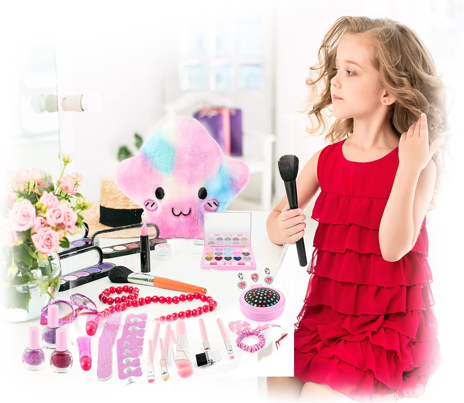 Girls 20 Piece Pretend Play Make Up Set with Fluffy Star Carry Bag Case