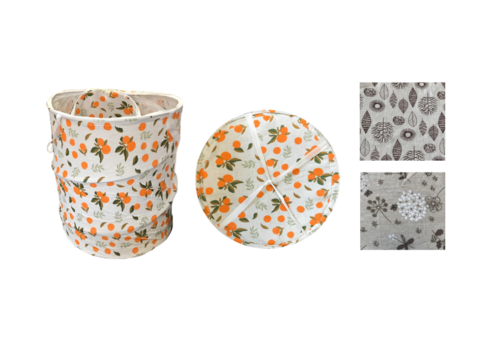 Round Foldable Collapsible Fabric Laundry Basket with Zipper 40 x 47.5 cm Assorted Designs 7657